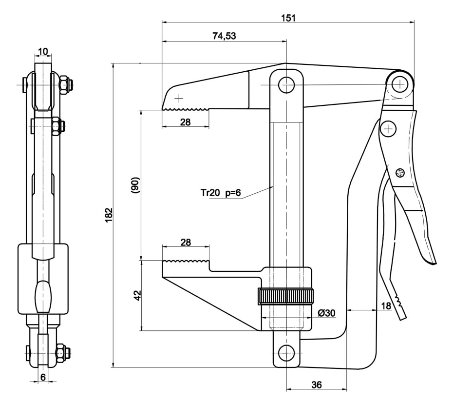 Einhand Schraubzwinge-Hebelzwinge in robuster, schwerer Ausführung :